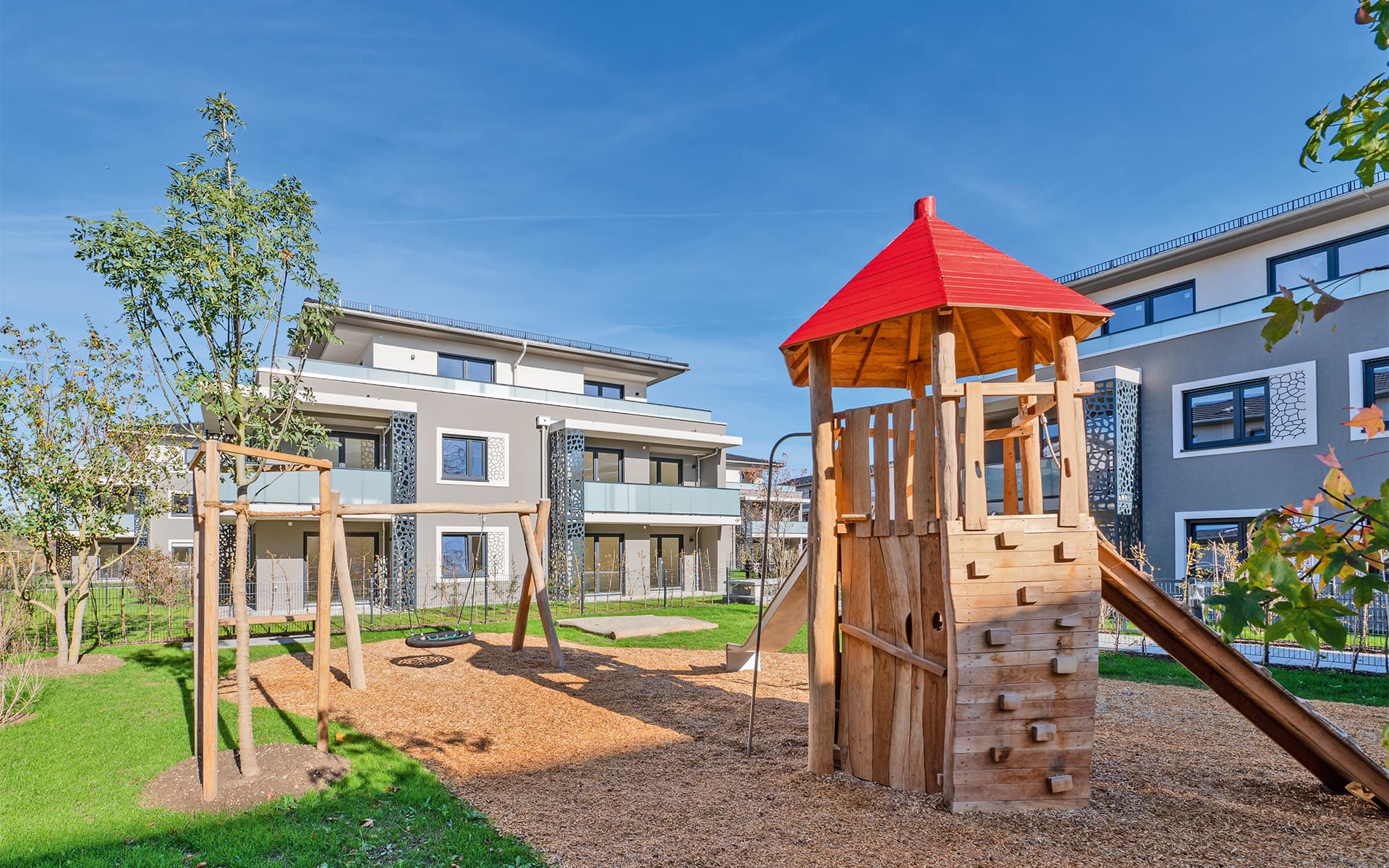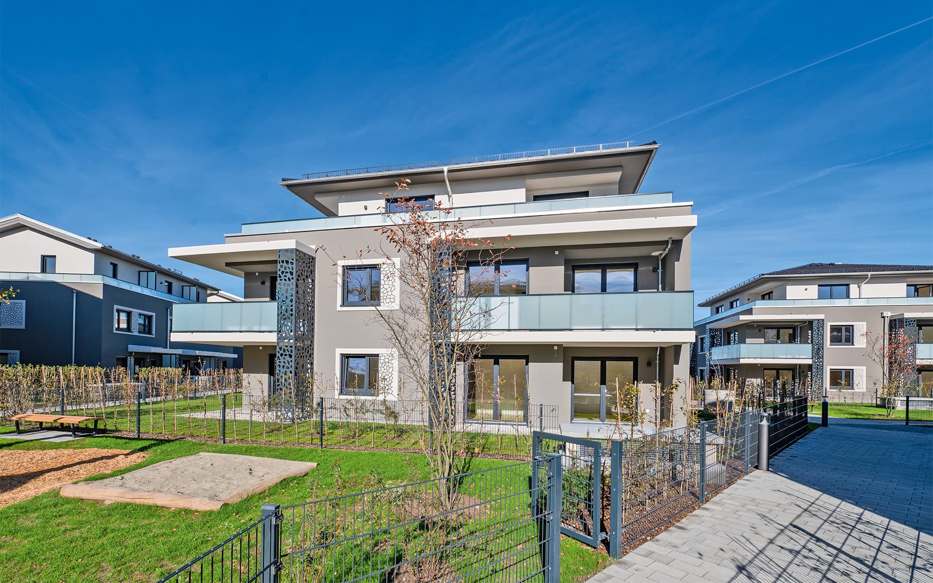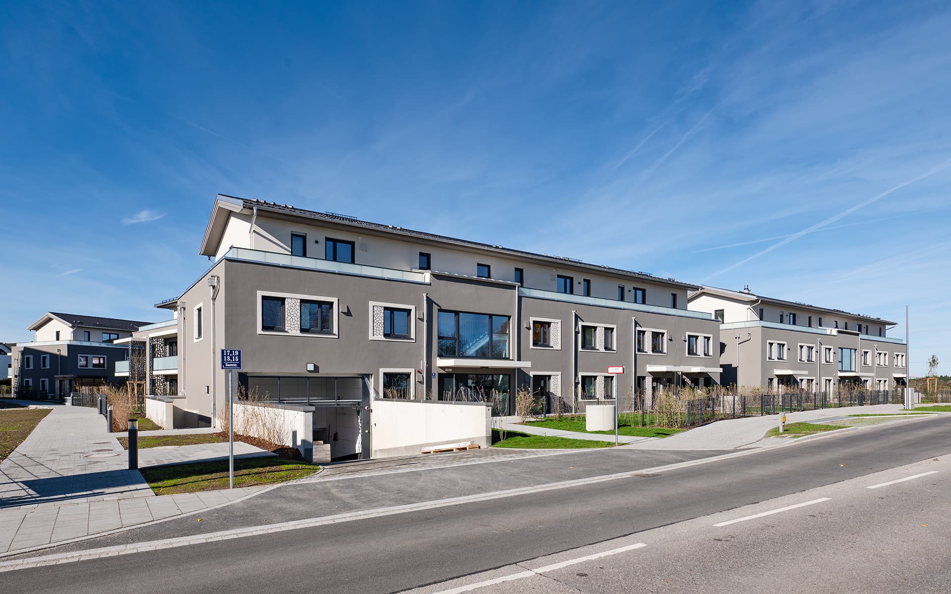 | Umfang der Leistung | Neubau von 57 Eigentums- und Mietwohnungen, 2- bis 5-Zimmer sowie Haus-im-Haus Varianten, verteilt auf 9 Baukörper und einer gemeinsamen Tiefgarage |
